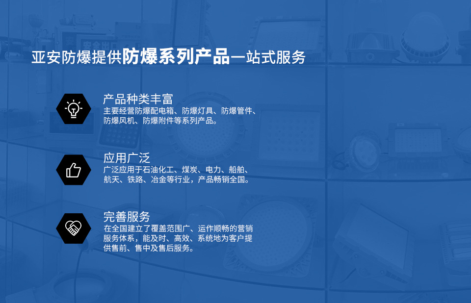 亞安是一家以防爆電器為主導(dǎo),集研發(fā)、制造、貿(mào)易、服務(wù)等功能于一體的民營(yíng)企業(yè)